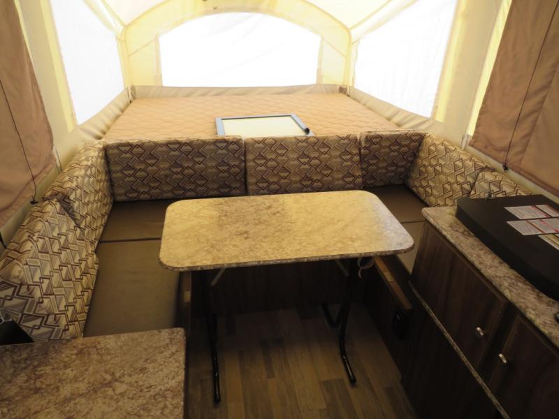 Step inside and push out the front and rear king size insulated bunks for a comfortable nights rest. There is plenty of storage throughout the camper with three storage cabinets and more available below the dinette seats.