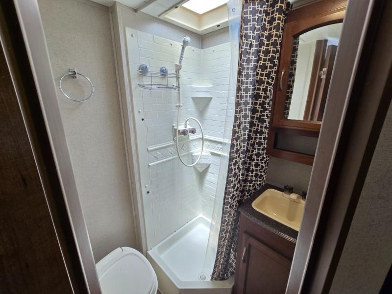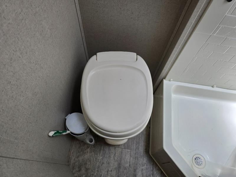 Lastly, enjoy the convenience of a full functioning bath including an angled shower, toilet, and sink, plus so much more!