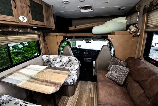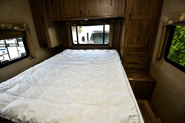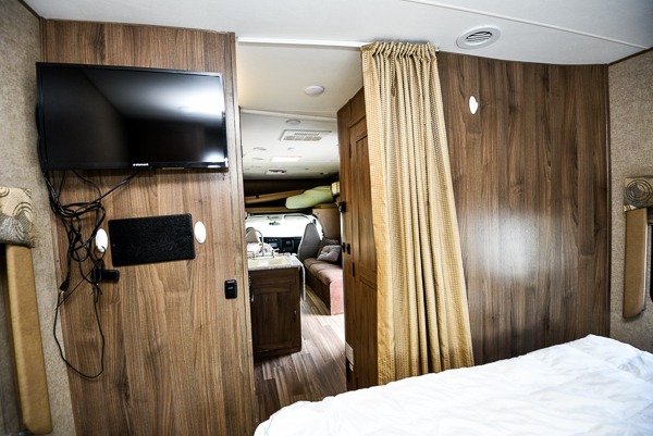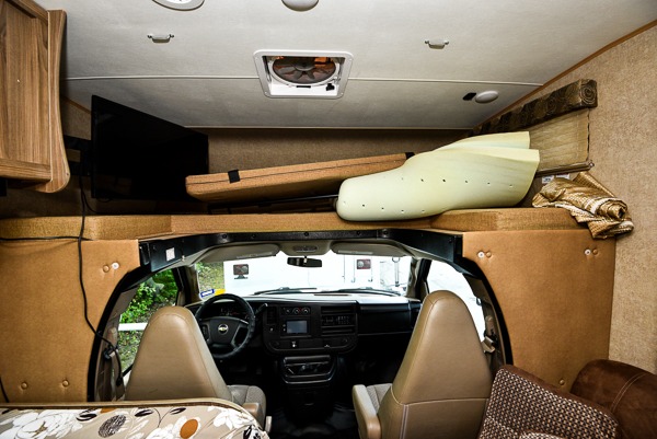 There is a 57" x 95" overhead bunk above the cab area for added sleeping space, plus a swing arm TV for your enjoyment.