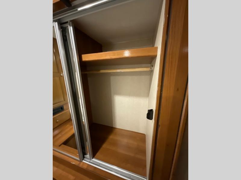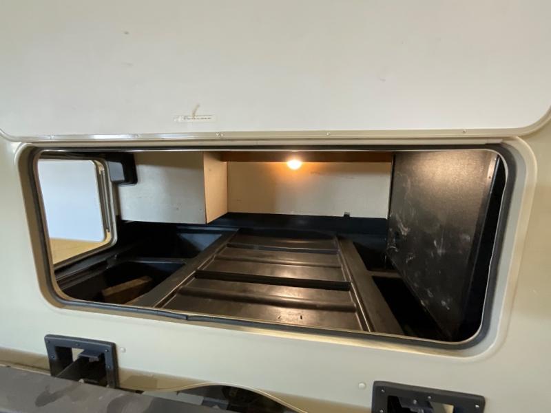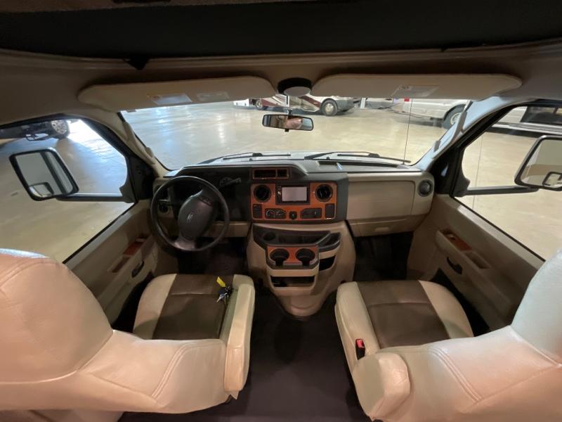 Step inside behind the front passenger seat and notice the overhead sleeping space above the cab area to your right. You may choose an optional passenger and driver swivel seats if you like.