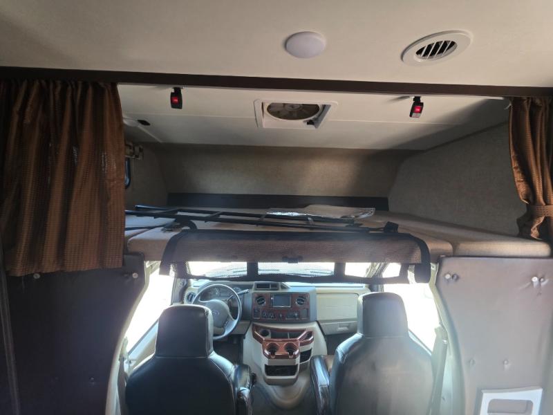 Step inside behind the front passenger seat and notice the overhead sleeping space above the cab area to your right. You may choose an optional passenger and driver swivel seats if you like.
