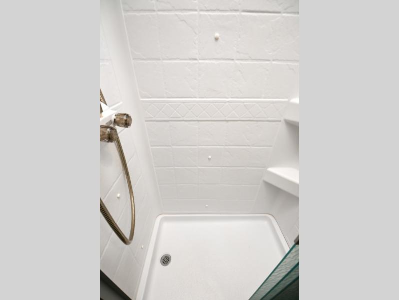 Behind the driver's seat find the start of a full wall slide out including a hide-a-bed sofa with storage above, and a booth dinette which provides plenty of seating for you and your guests. You can easily create more sleeping space for those guest who spend the night.