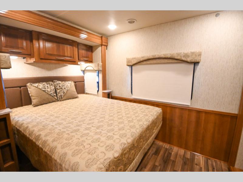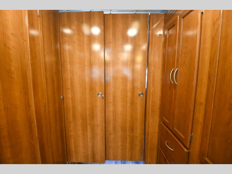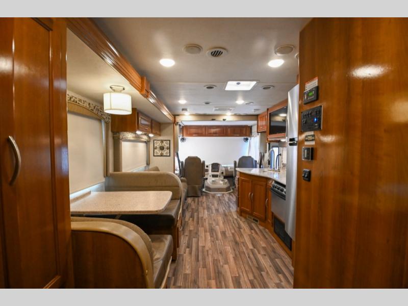 This Coachmen Mirada class A gas motor home features a full wall slide on the driver's side providing a wide open space inside. There is also a second slide in the rear bedroom so you can have plenty of room to relax in.