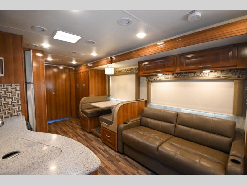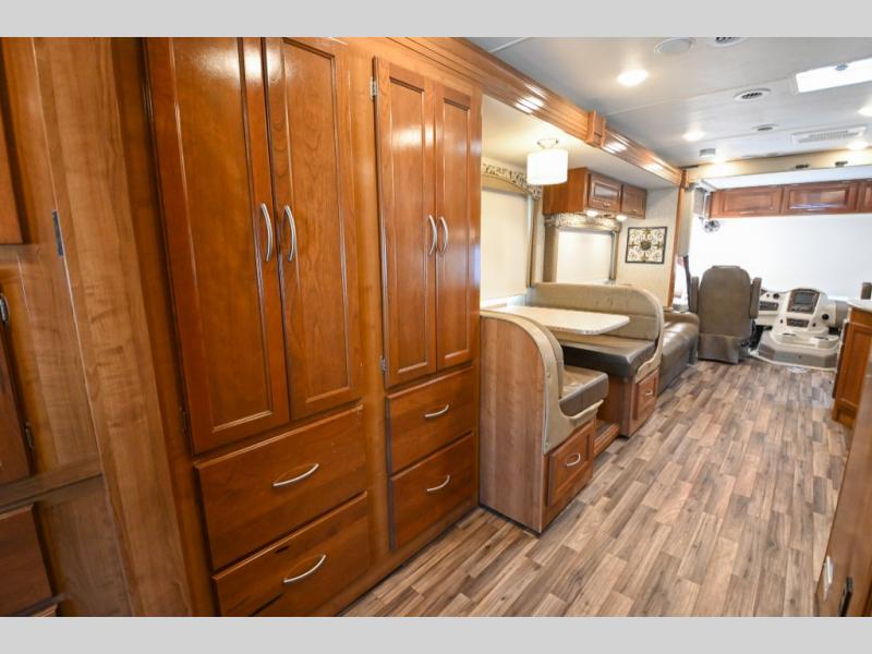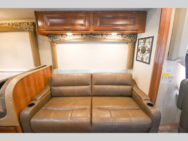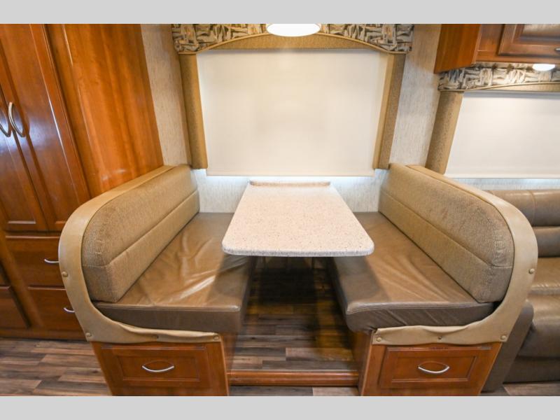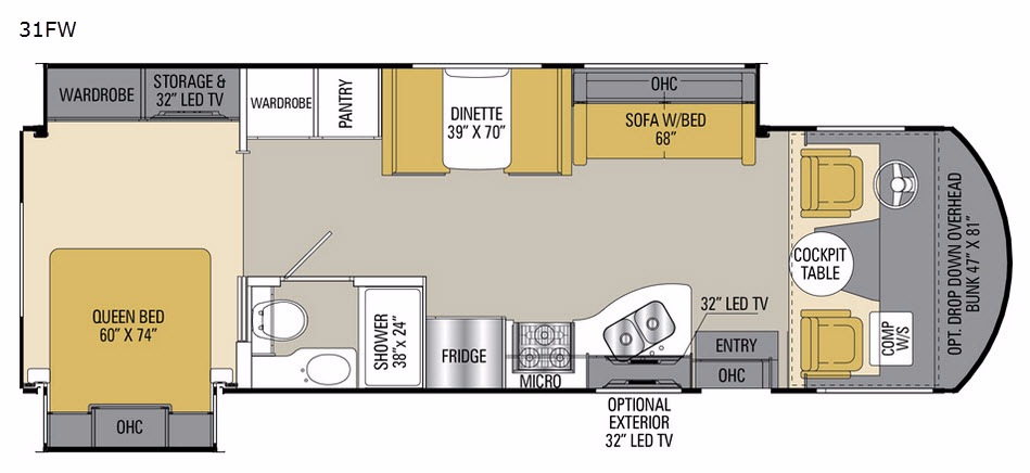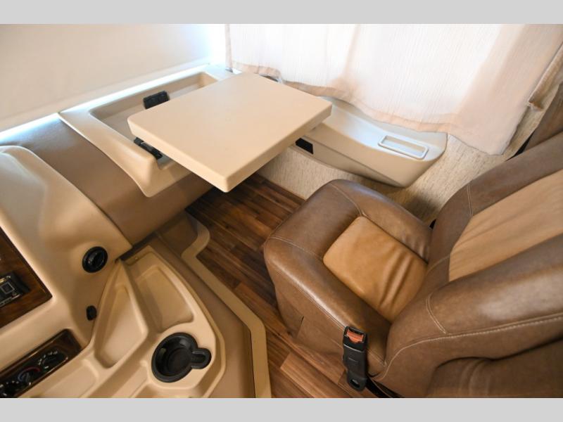 You may decide to choose the optional drop down bunk above the cab area that already features a table between the driver and passenger's chairs, an optional exterior 32" LED TV, plus so much more!
