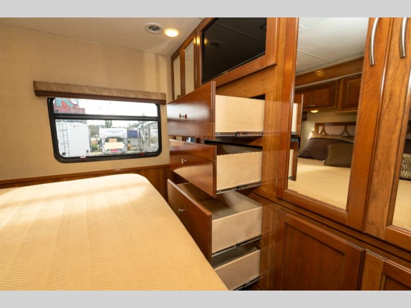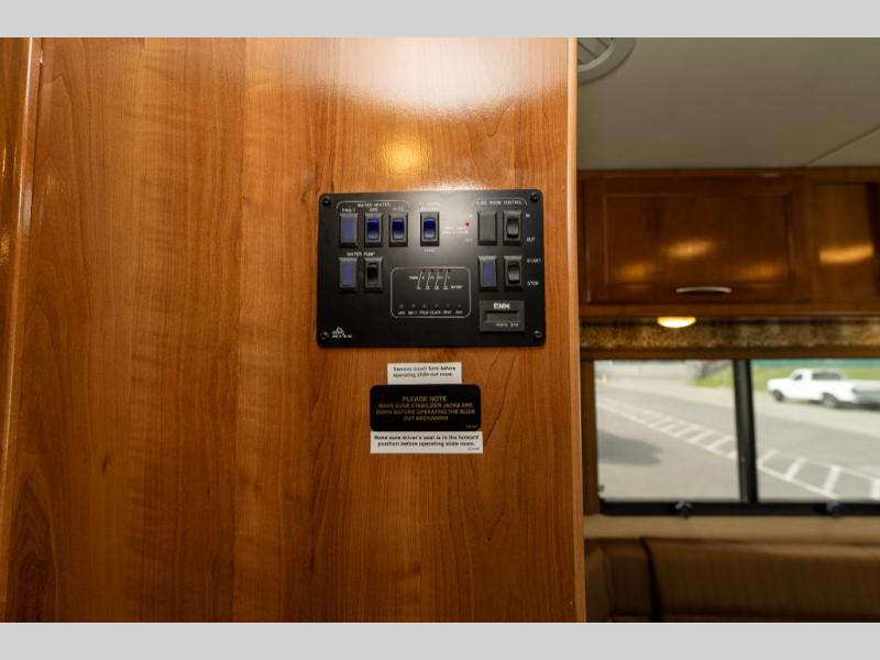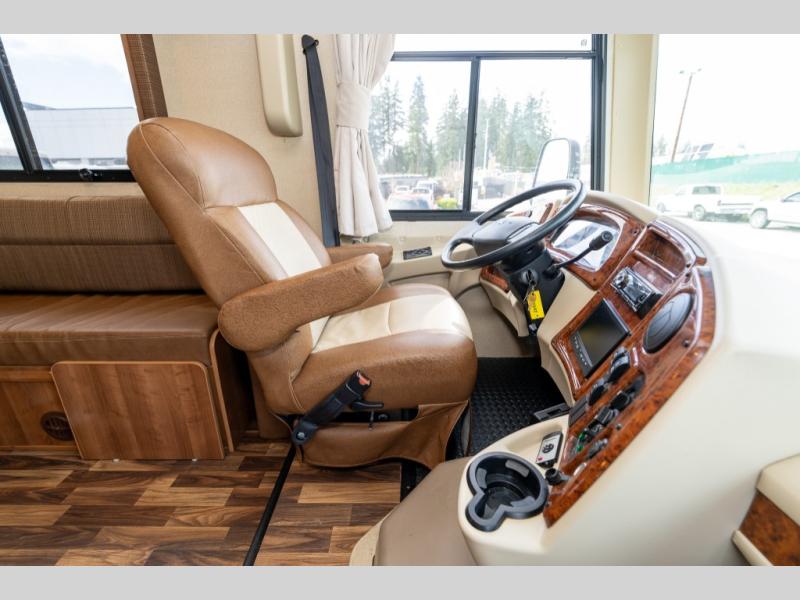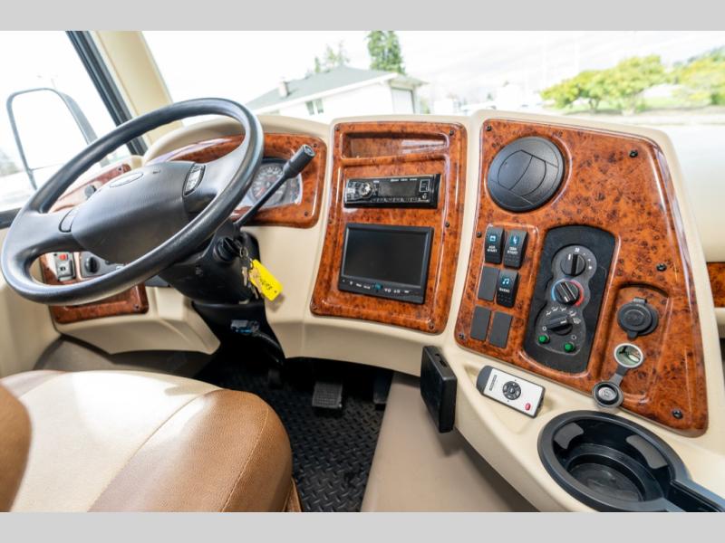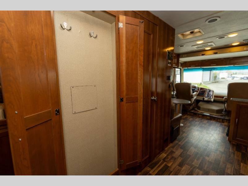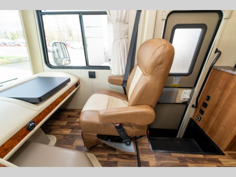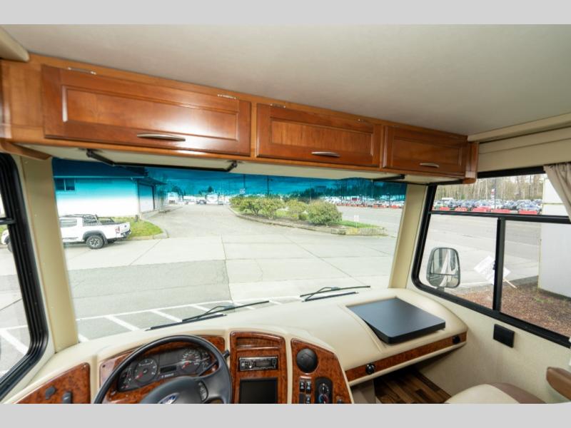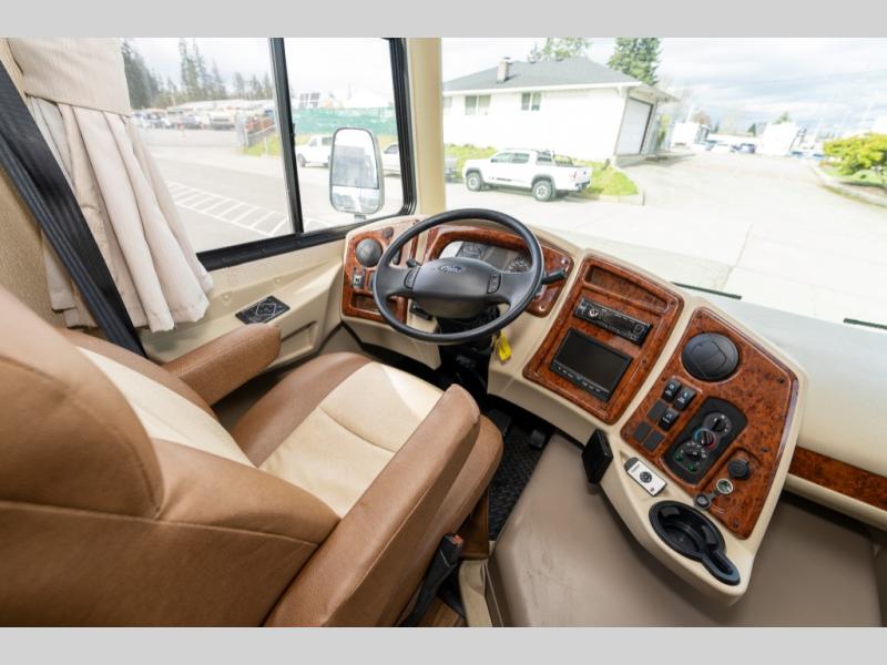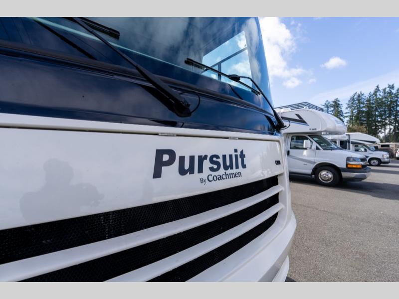 This Coachmen Pursuit class A motor home has everything you need and more to fully enjoy the time you spend away from home. The electric front drop down bunk provides added sleeping space for family or overnight guests. Plus there is a cockpit table and computer workstation up front.