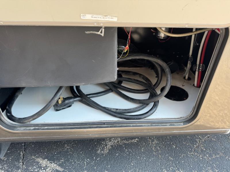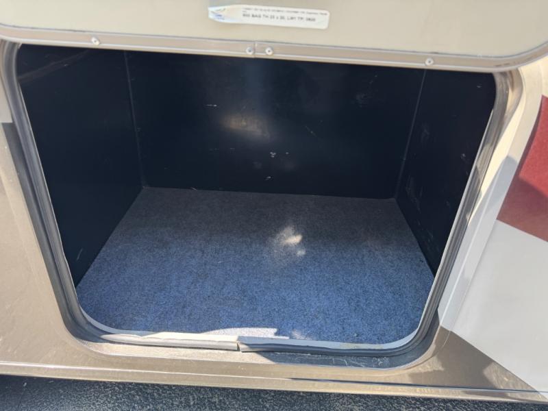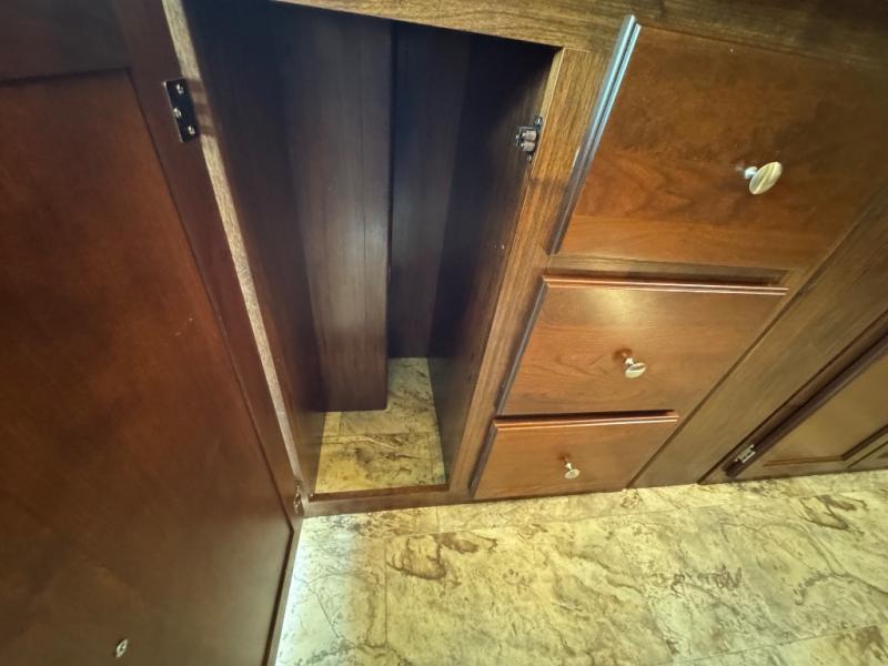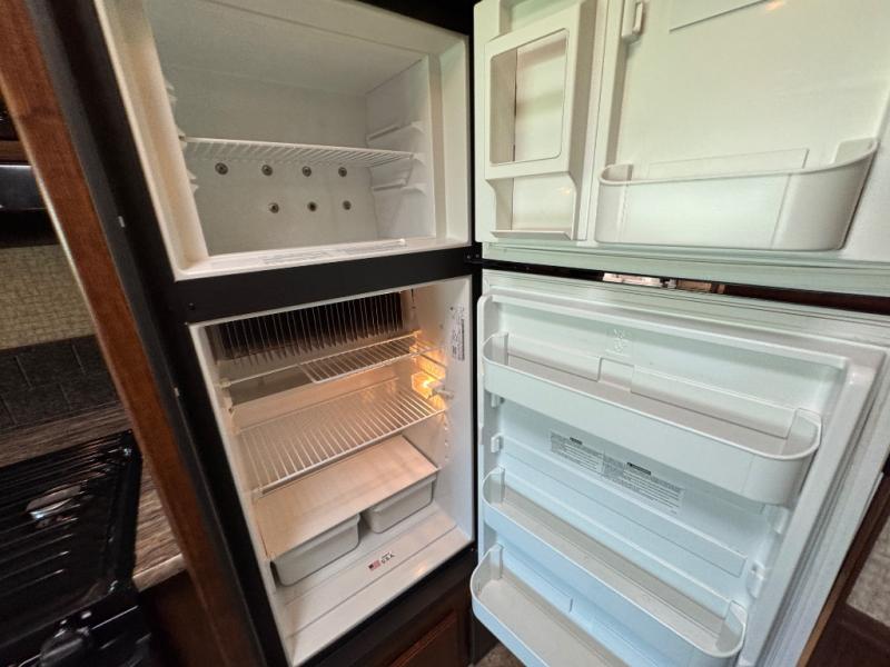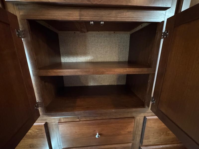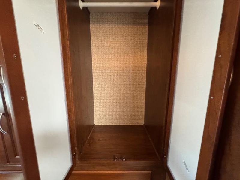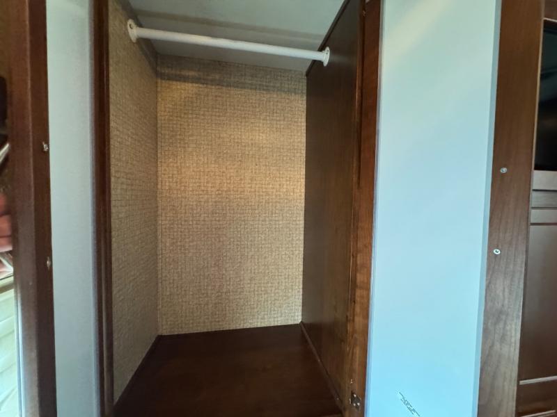 The rear bedroom features a queen size bed slide with nightstands. Opposite the bed is a wardrobe with drawers. There is also a space for a TV in the center for your enjoyment, plus so much more!