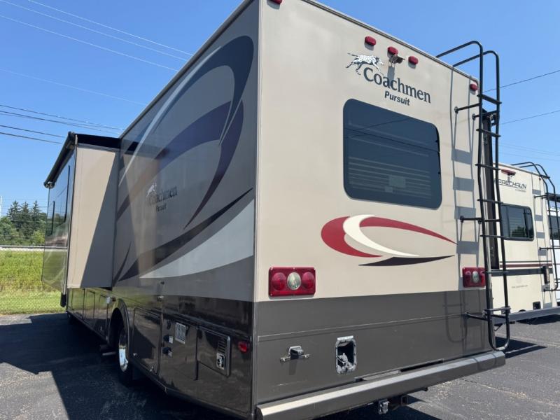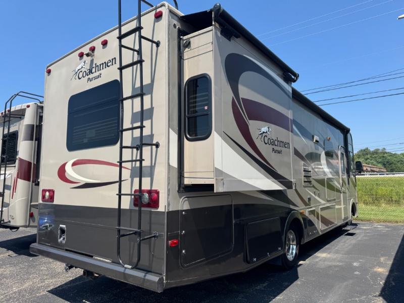 This Coachmen Pursuit 31BD class A motorhome features double slide outs for additional interior space, and everything you need to live comfortably as you travel from place to place!