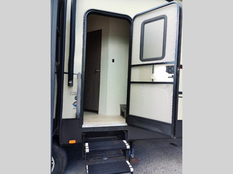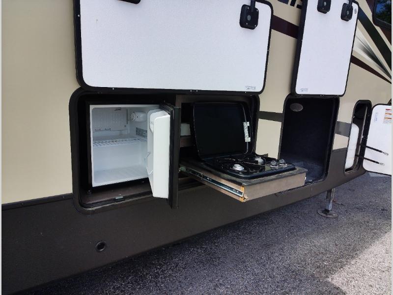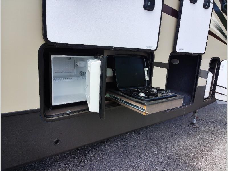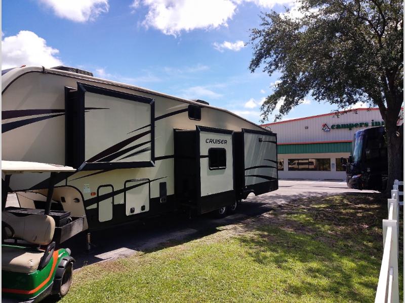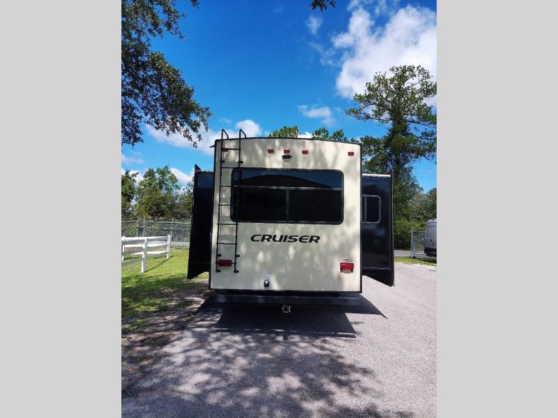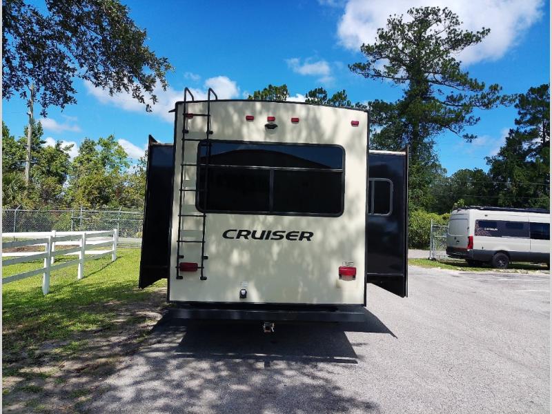 This Cruiser fifth wheel model CR3471MD features plenty of at-home features that your family will love. This unit provides quad slides for added interior space, a middle den/bedroom with loft above, a cozy fireplace in the living area, plus a convenient kitchen island, an outdoor kitchen, and more!