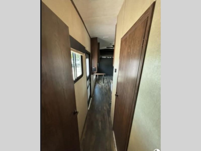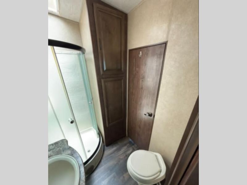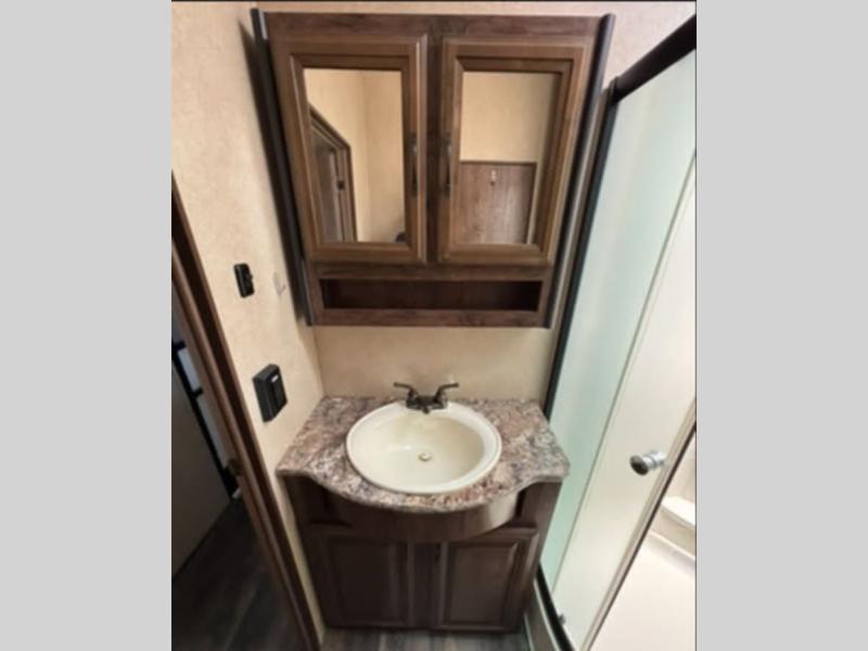 Head up front to a side aisle bath where you can easily clean-up with a corner shower, linen cabinet, sink with medicine cabinet, plus toilet. There is a second bathroom door that leads directly into the front master bedroom where you will find a king bed, wardrobe storage, and so much more!