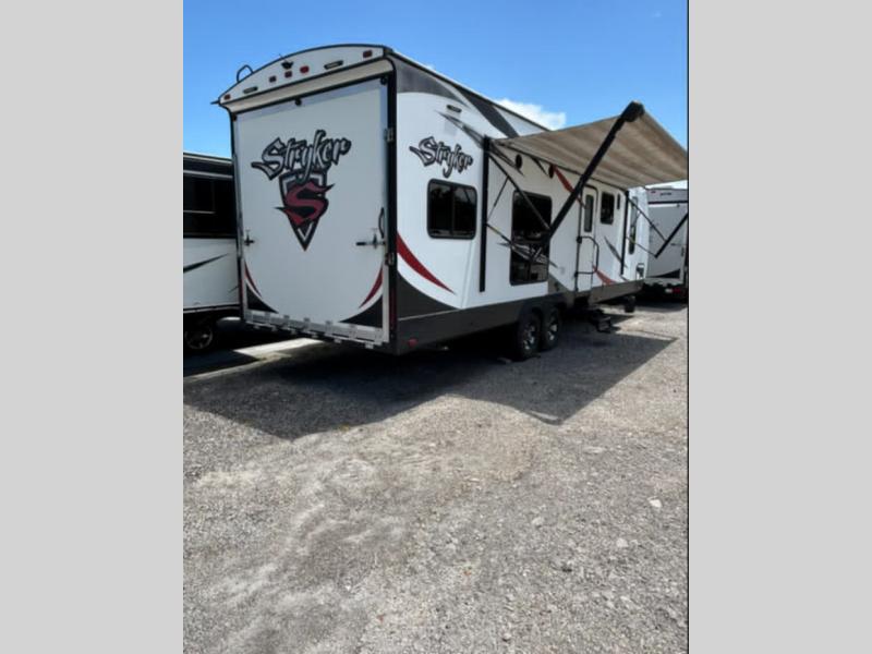 Save Huge 10% OFF ALL NEW UNITS! up to 3000.00 instant savings on select unitsYou are sure to enjoy your next toy hauling adventure in this Crusier Stryker ST-2912 toy hauler travel trailer. There is a KING size bed, single slide out, dual entry bath, plus much more!