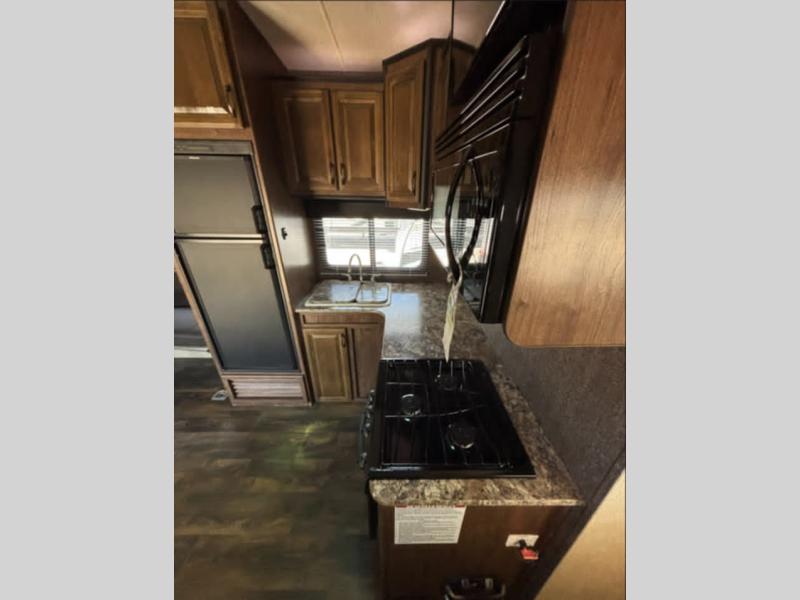 Cook up all of your meals and snacks easily in the Stryker kitchen which features a refrigerator, double sink, counter space, three burner range, and microwave oven, plus ample storage for all of your dishes and things.