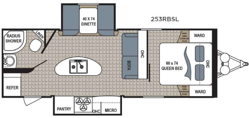 This Kodiak Express model 253RBSL by Dutchmen RV offers a rear corner bath, dual slides for added interior space, and a convenient kitchen island, plus more!