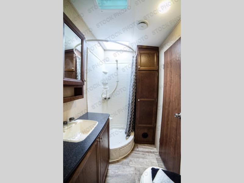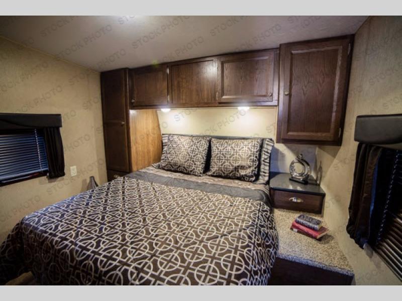 In the front bedroom you will enjoy a queen size bed, a handy wardrobe along the road side front, and a shirt closet and nightstand along the curb side front. There is also an overhead cabinet above the head of the bed, plus so much more!