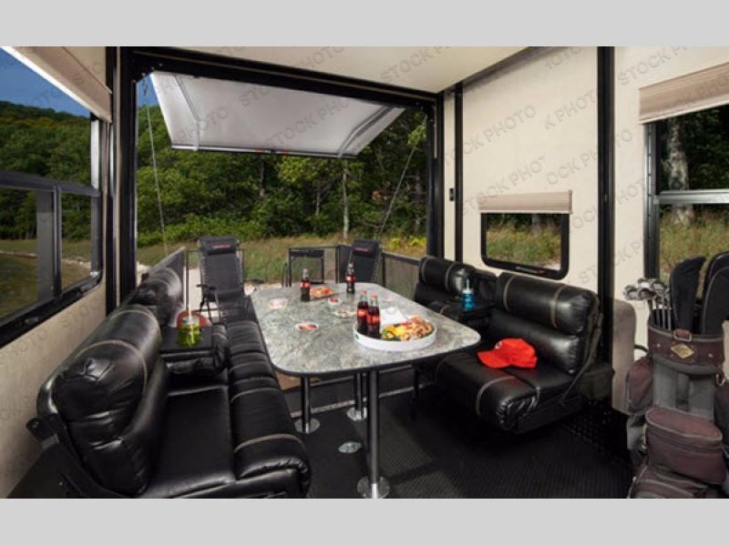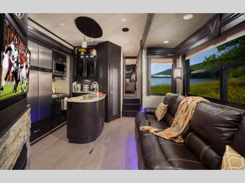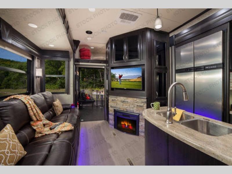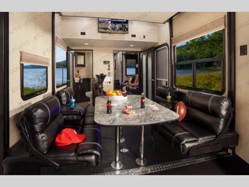 This Voltage V3605 fifth wheel toy hauler by Dutchmen has everything you need to enjoy spending time away from home, plus you can take along a few of your favorite toys to enjoy as well!