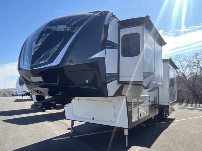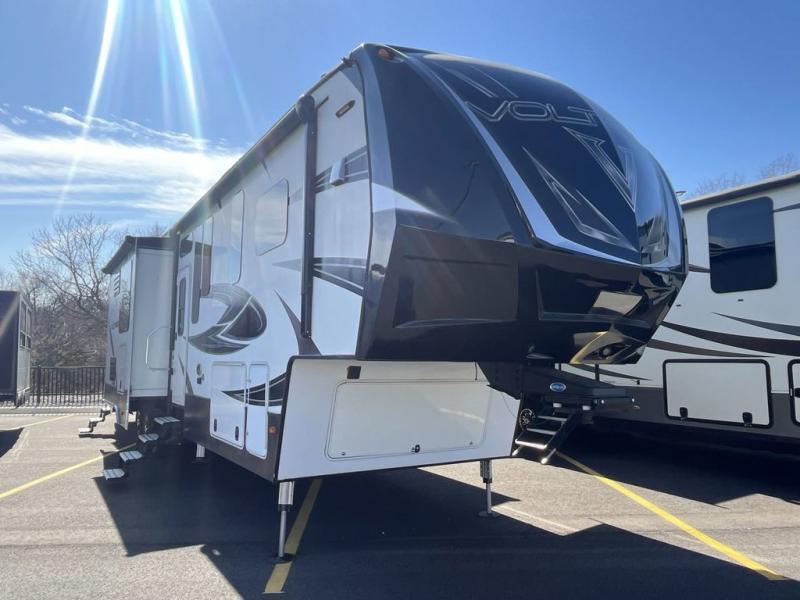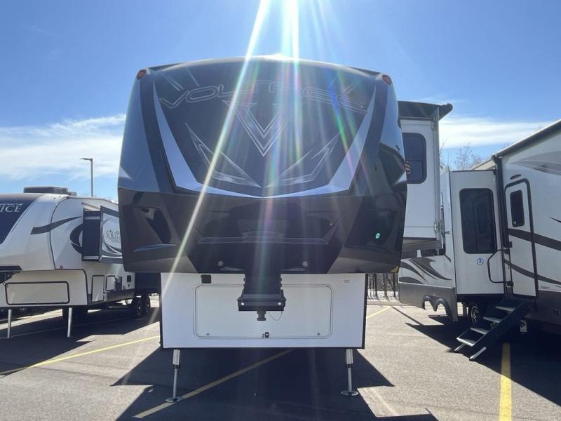With 11' of cargo space for you outdoor toys, and plenty of room for family and friends, this Voltage Epic fifth wheel toy hauler model V3970 by Dutchmen RV is ready to take your fun up a notch or two!