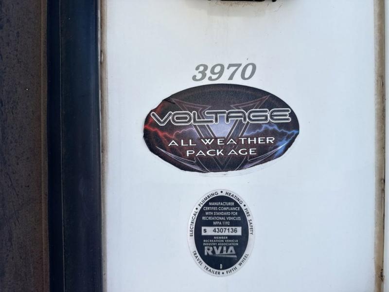 With 11' of cargo space for the outdoor toys, and plenty of room for family and friends, this Voltage fifth wheel toy hauler model 3970 by Dutchmen RV is ready to take your fun up a notch or two!