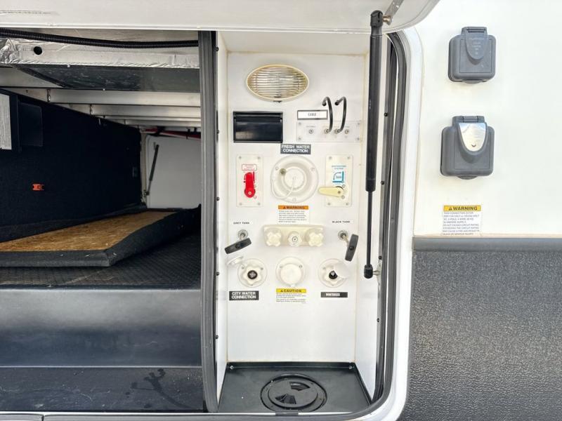 The rear ramp door with spring assist will make loading and unloading a breeze. There is a side man door for access once the ramp door is closed. Once you reach your destination and the toys are removed from the cargo you can add the optional Happijack power bunks for more sleeping space, or optional sofas with a table if you like traveling with a whole crew. There is a 32" TV, plus a 40" X 48" twin bed loft that overlooks the main room that the kids will certainly enjoy.