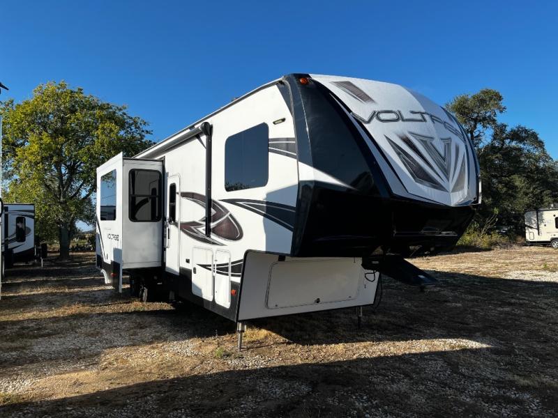 Call 512-930-4922 for more info!This Voltage V3605 fifth wheel toy hauler by Dutchmen has everything you need to enjoy spending time away from home, plus you can take along a few of your favorite toys to enjoy as well!