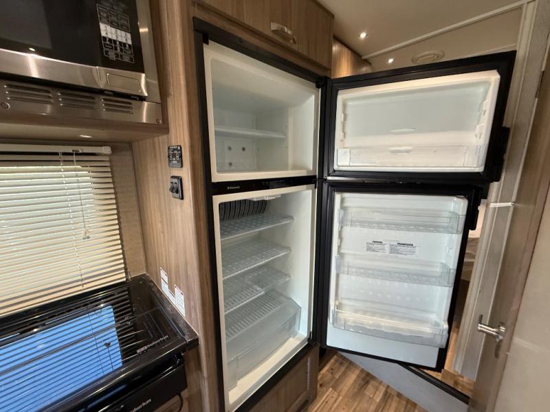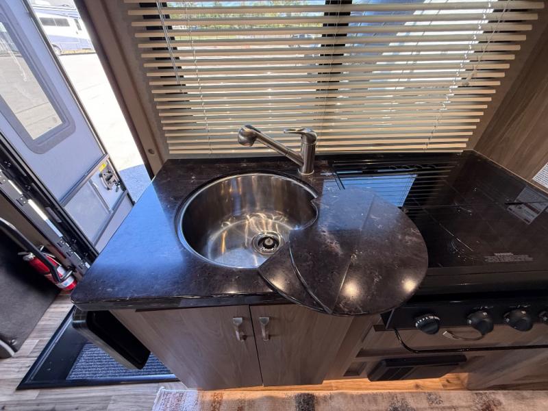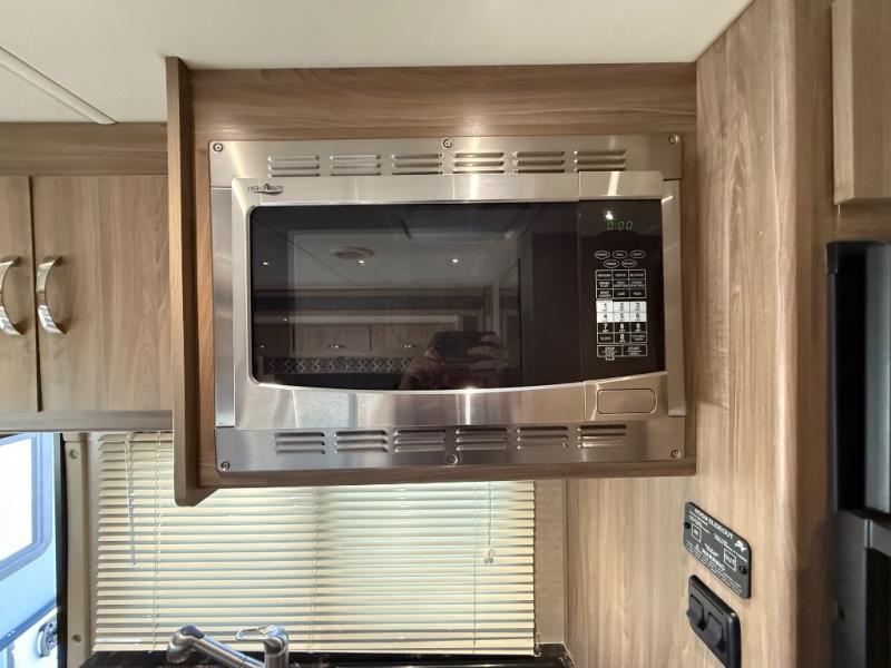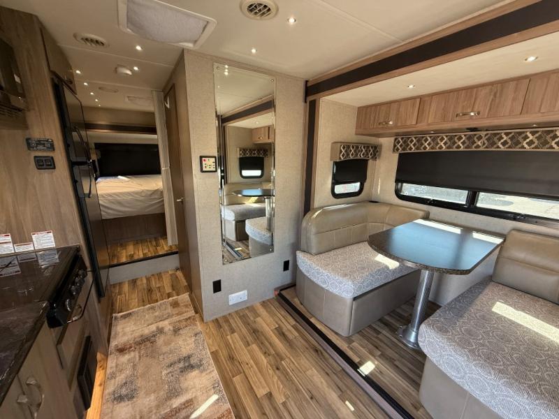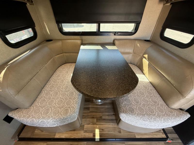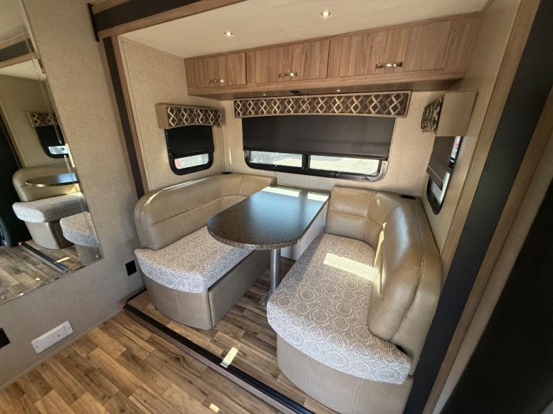 Enter just behind the rear of the passenger seat and find a spacious kitchen and dining area. Here the booth dinette slide out behind the driver's seat provides more walking around space. You will easily be able to dine comfortably, and watch some TV with a 32" LED TV opposite when you find a destination to stop and enjoy.