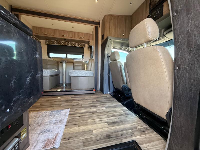 A few options include dual recliners or a tri-fold sofa with a table in place of the dinette, a cab over bunk or a cocktail table between the driver and passenger seats.