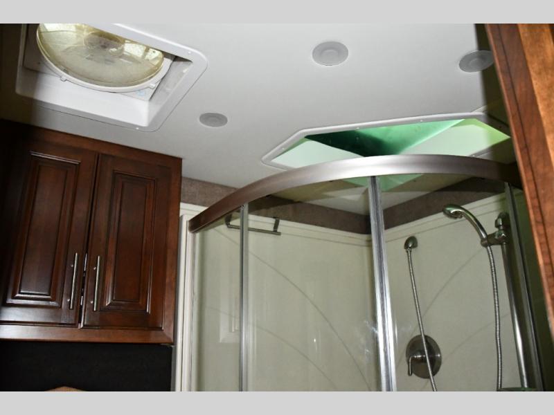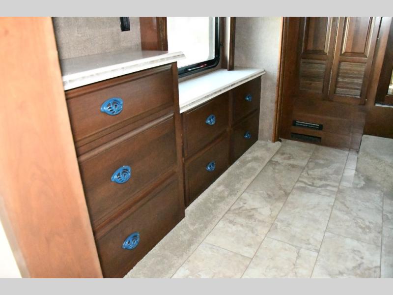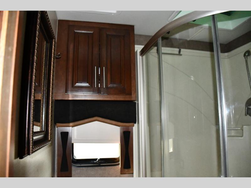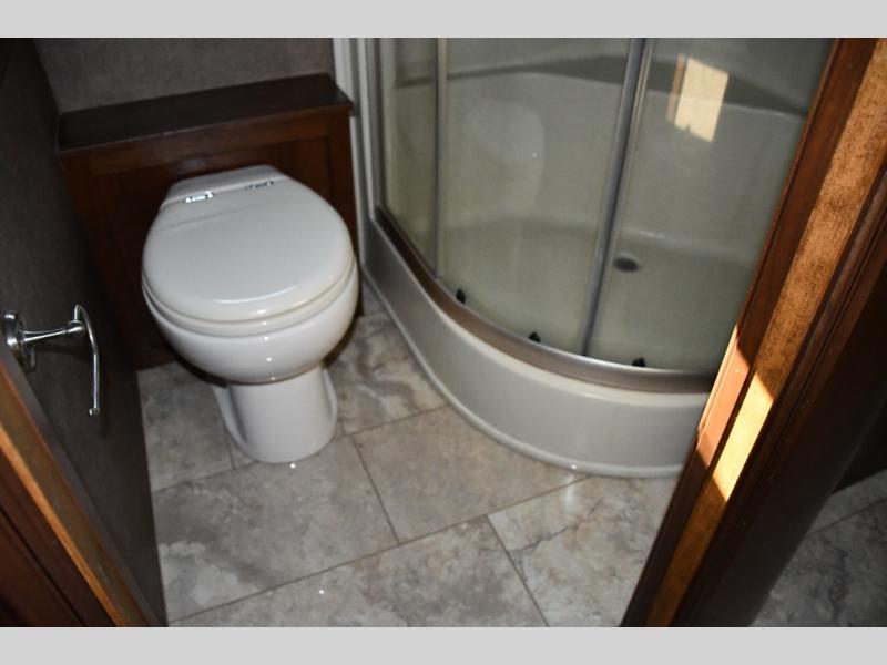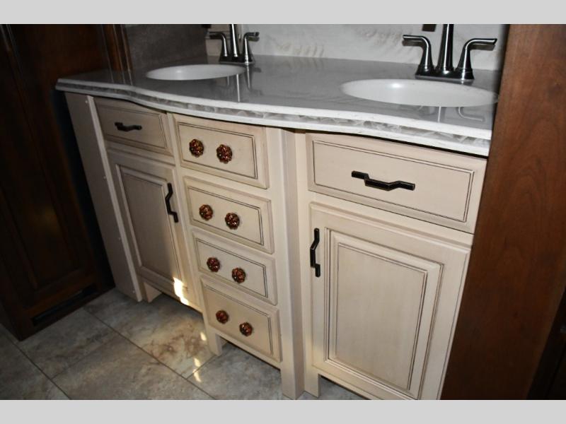 Walk-Through Bath with Dual Sinks – No more waiting—dual vanity sinks plus a private toilet area and large shower give you a spa-like retreat on the road.