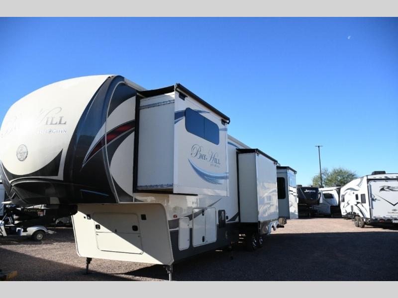 Step into residential-style luxury with the 2017 EverGreen Bay Hill 375RE, a fifth wheel built for those who want the space, comfort, and sophistication of home while traveling the open road. With five slides, a beautifully appointed living area, and sleeping for up to six, this Bay Hill model is ideal for extended getaways or full-time living.
