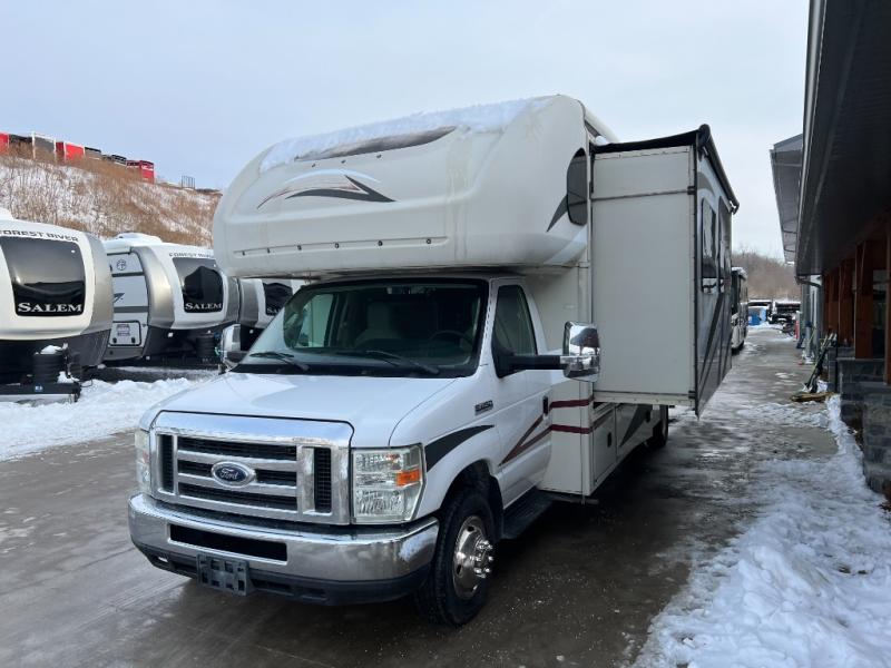 You will enjoy traveling in this spacious Fleetwood Jamboree Class C coach. Model 30F offers a full wall slide out which creates a much wider space for walking around in all areas front to back, plus you will love the at-home features that make traveling easier and more comfortable!