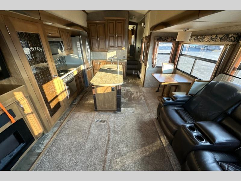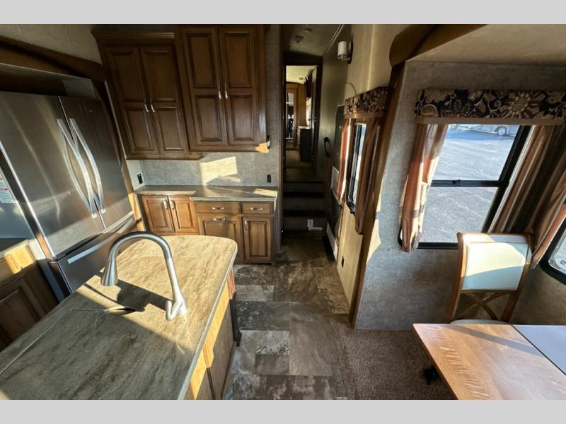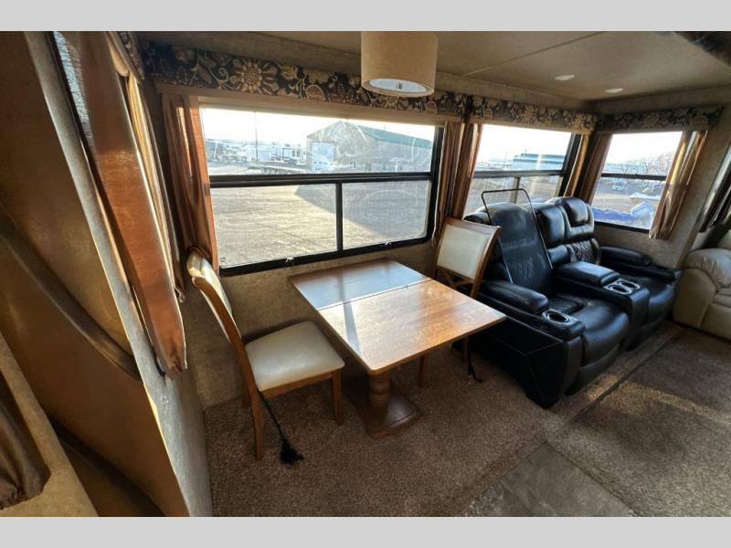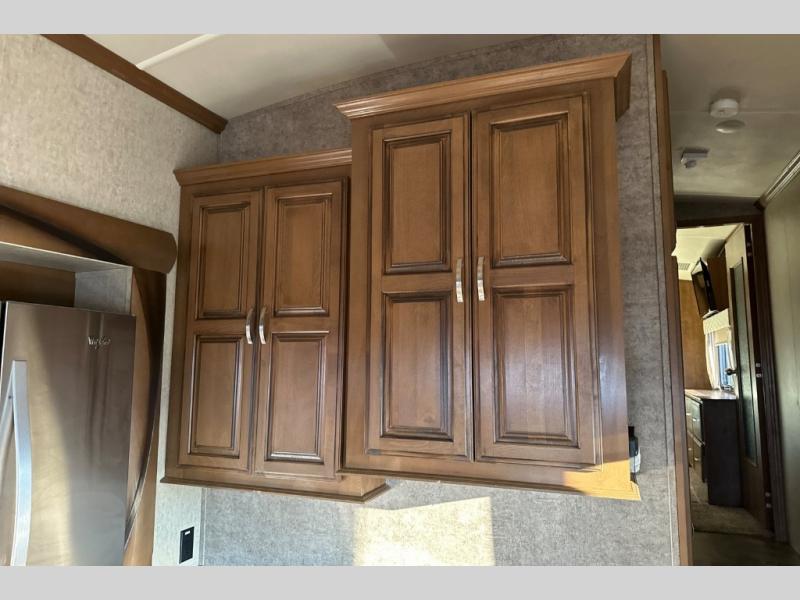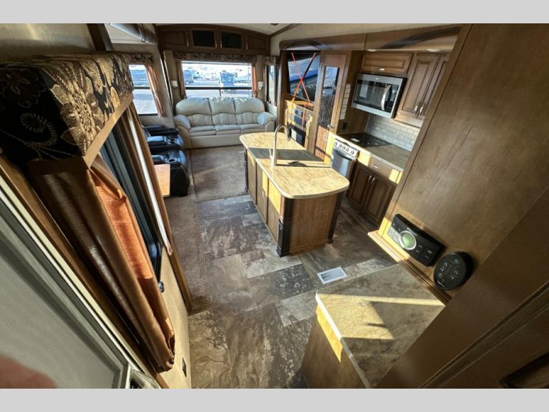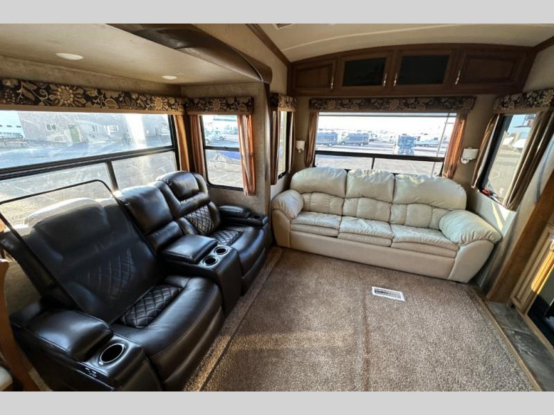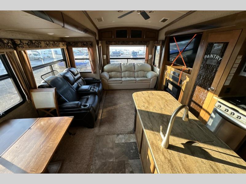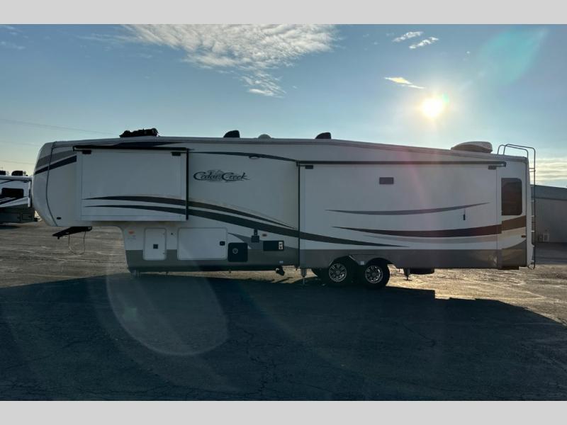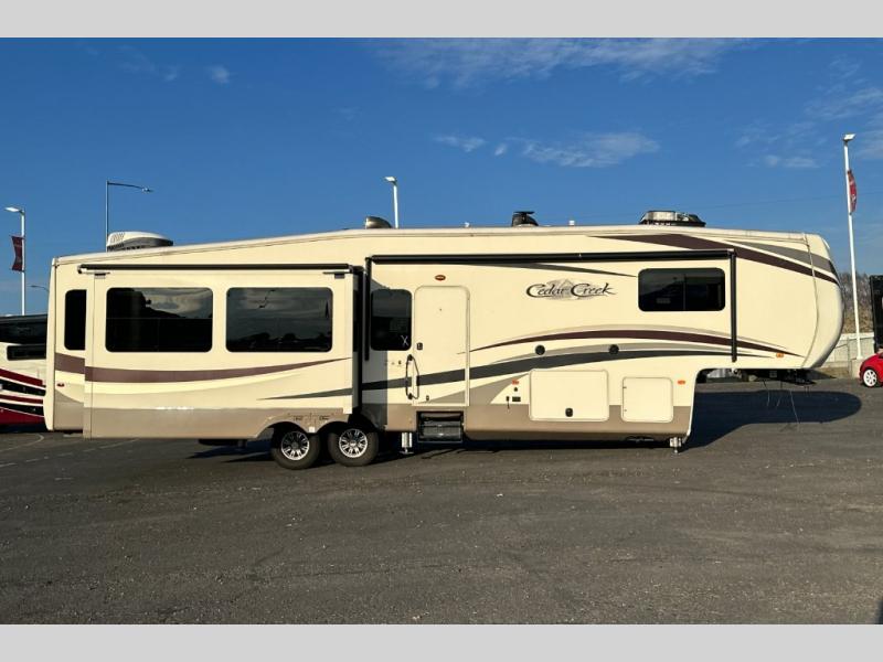 This triple slide out Cedar Creek Hathaway Edition 36CK2 fifth wheel by Forest River offers spacious living accommodations and all the comforts of home.