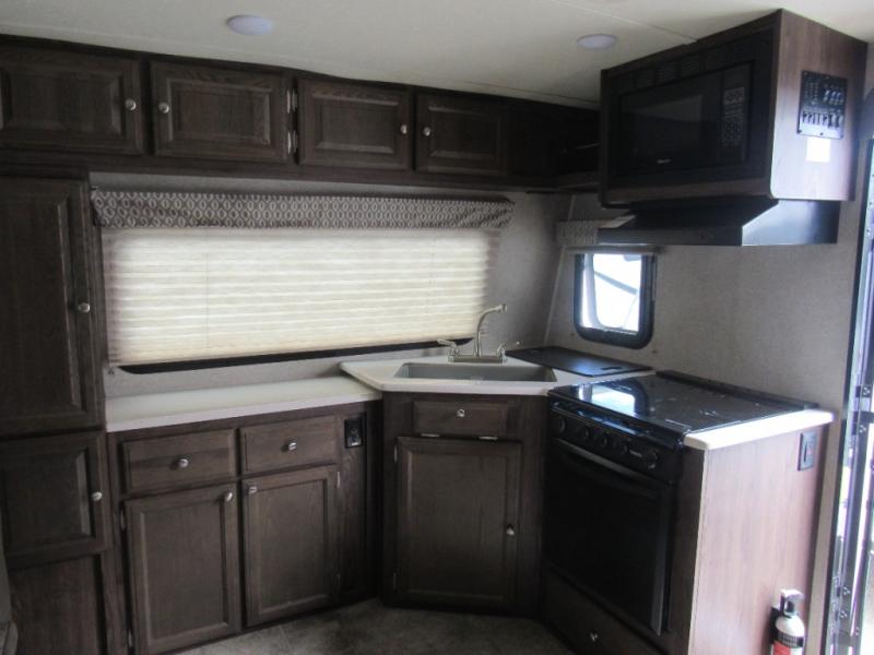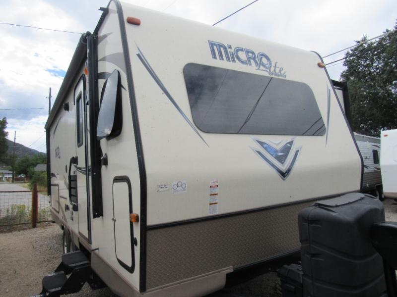 Great preowned travel trailer!Enjoy your time camping in the Flagstaff Micro Lite 25FKS travel trailer by Forest River. This model features a single slide out, and a front kitchen, as well as an outside kitchen which makes fixing your meals outside a breeze.