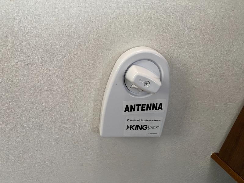 In the rear of the motor home there is a bed, overhead cabinets, and an optional TV along the wall.