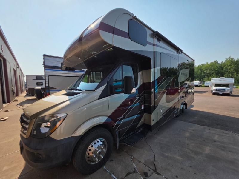 Mercedes Sprinter 3500 chassis with the V6 Diesel engine Averages 12-17mpg. Full body paint on the Forester MBS model 2401R by Forest River has double slide-outs in this sought-after floorplan. A rear walk-around queen bed slide along with a side slide with a factory installed sofa/bed in place of dinette, which quickly converts with the added table to become a dinette area for eating. When you enter the motor home, to the right, above the cab you see a 54" x 80" overhead bunk and entertainment center with indoor/outdoor speakers, 32” LED TV, and HDMI hookups. One side of the motor home has a flip-up countertop, single sink, three burner range, convection microwave oven and refrigerator/ freezer. The opposite side features storage cabinets, a leather sleeper sofa with seatbelts which folds down for an added sleeping area. The table can easily be setup for a large dinette eating area. The bathroom has a toilet, medicine cabinet, and shower. There is a small sink and medicine cabinet located just outside of the bathroom area. In the rear bedroom close the sliding door and relax on the rear queen bed slide. The bed can stay fully made as you fold in the slide to move on to your next destination. Next to the bed you will find a wardrobe and in the corner of the room there is a TV. Just outside the bedroom area you will find a large wardrobe, which provides storage, and much more!
