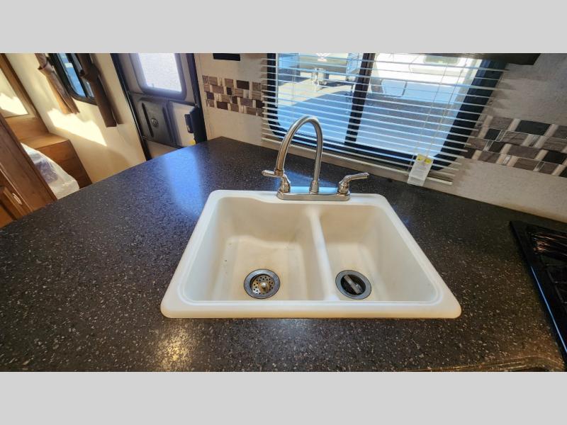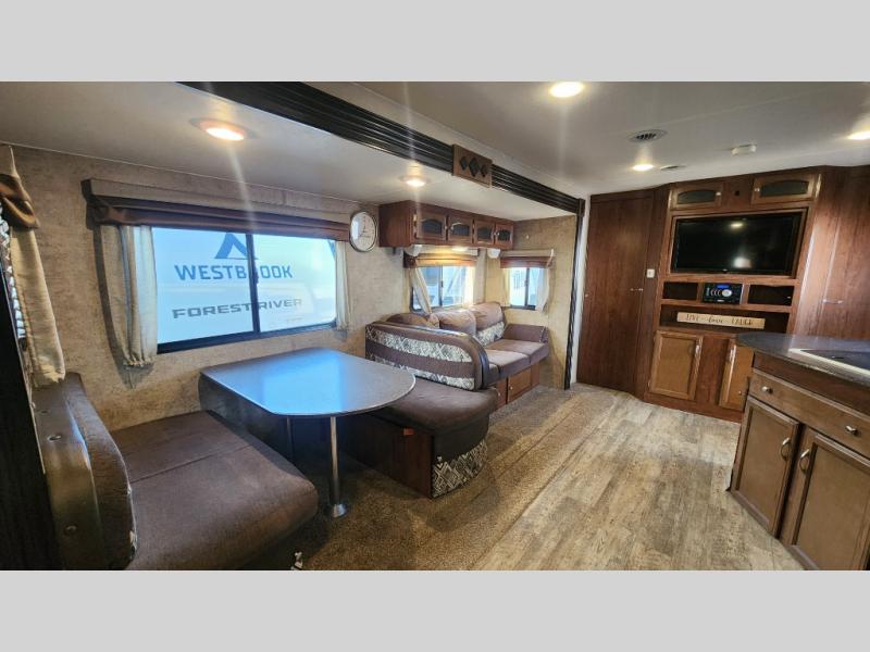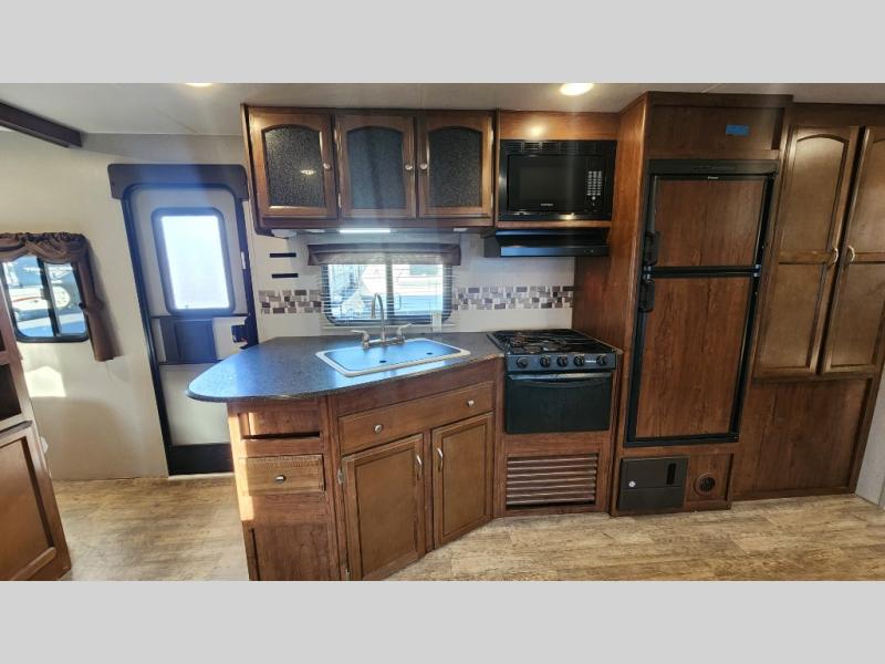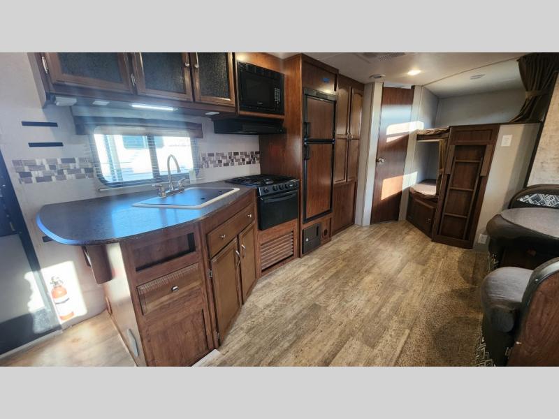 “Used? Yes. Loved? Absolutely. Ready for More Adventures? Always.” Options Featured in This Unit Include a Booth Dinette; Double-Size Bunk Beds; Front Private Bedroom with Queen-Size Bed; Outdoor Kitchen; Dual Entry!