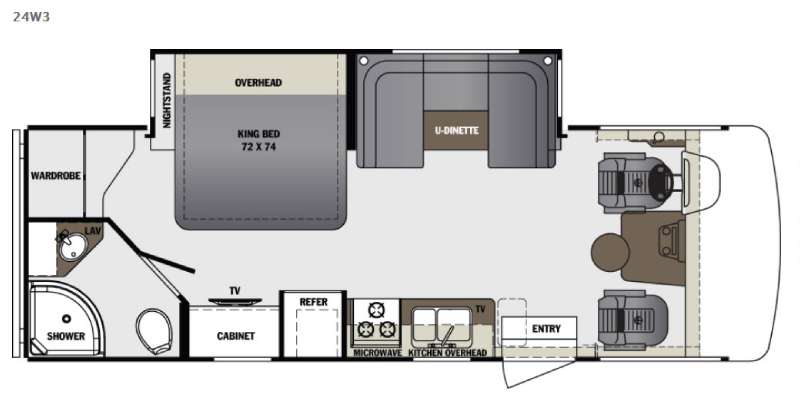 Take to the road and enjoy every vacation destination in this Forest River Georgetown 3 Series class A gasoline coach. Model 24W3 offers a rear bath, king size bed, and a large slide out for added moving about space, plus so much more!