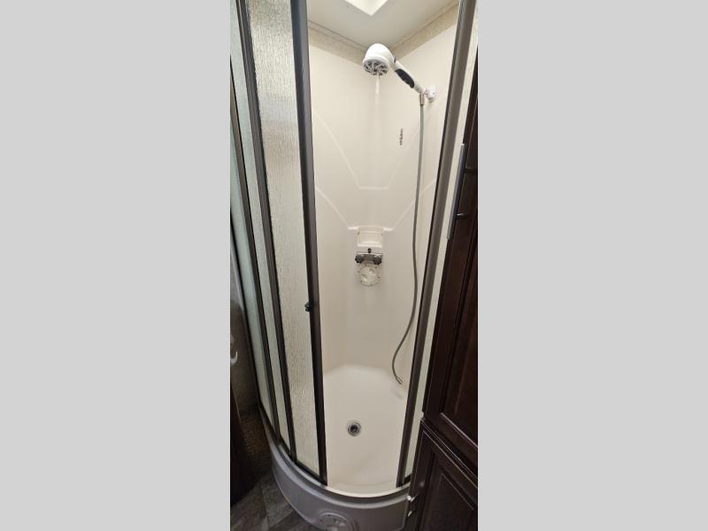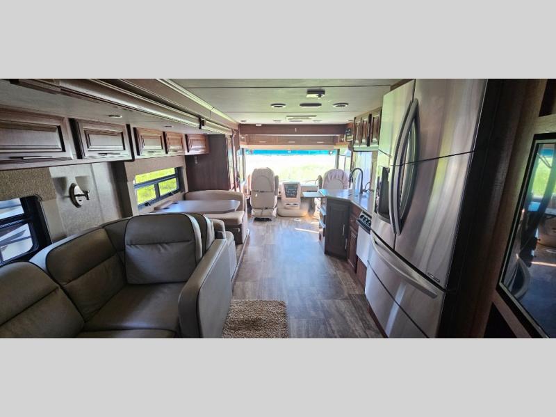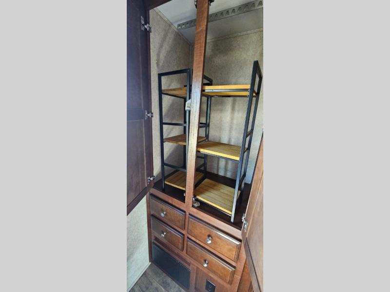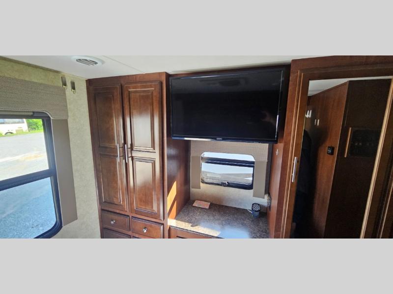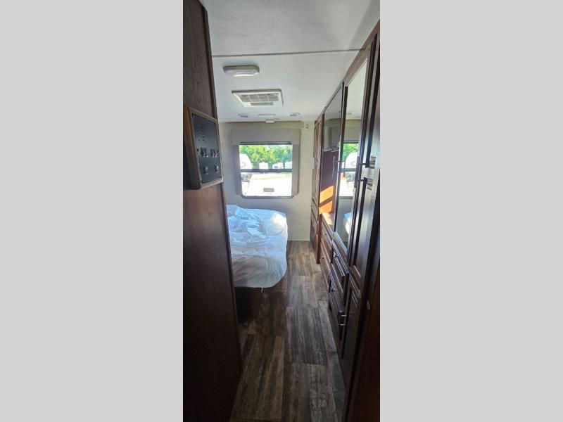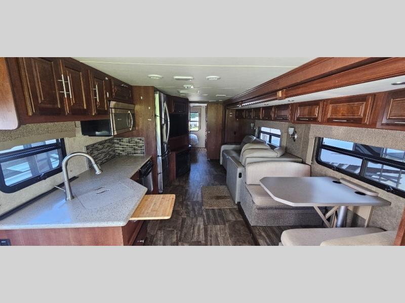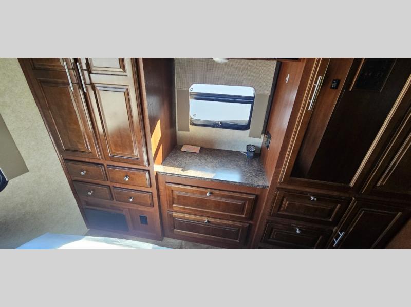 This motor home offers plenty of overhead cabinets and drawer space throughout, and so much more!