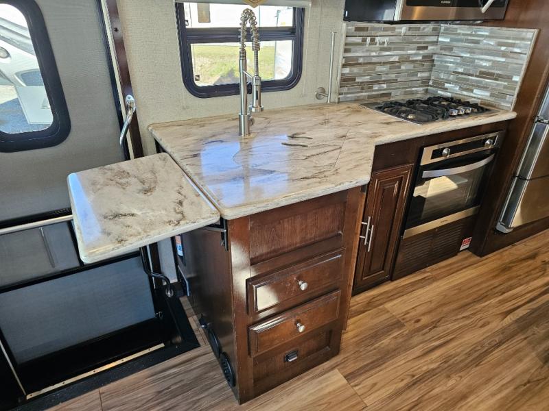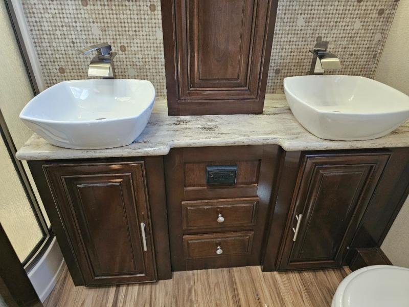 The 2017 Georgetown XL 369DS offers a luxurious and thoughtfully designed interior, making it ideal for extended trips or full-time RV living. The combination of residential amenities, dual bathrooms, and spacious sleeping arrangements ensures everyone is comfortable on the road. Whether you're exploring new destinations or relaxing at the campground, this motorhome provides the perfect blend of comfort, functionality, and style.