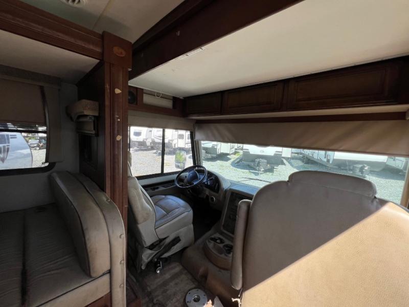 As you step inside model 31L5, to your right you will find the cab area with a table between the driver and passenger chairs for your morning cup of joe. You can even choose to add the optional power overhead bunk above the cab if you need more sleeping space.