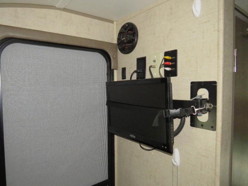 Add a TV if you like with a space provided to the left of the door. There is also a rear pass through storage compartment for all of your camping gear, plus so much more!