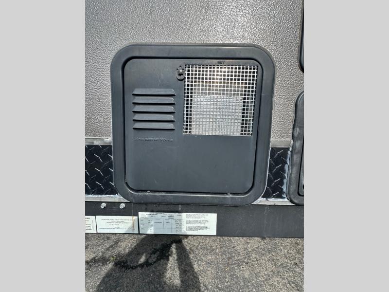 Outside find a gas grill, awning, and in the front there is a 28" x 84" front deck storage with expanded metal decking where you can load up bikes, or other camping gear, and more!