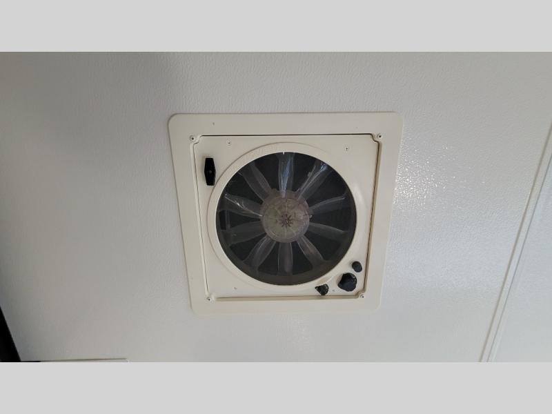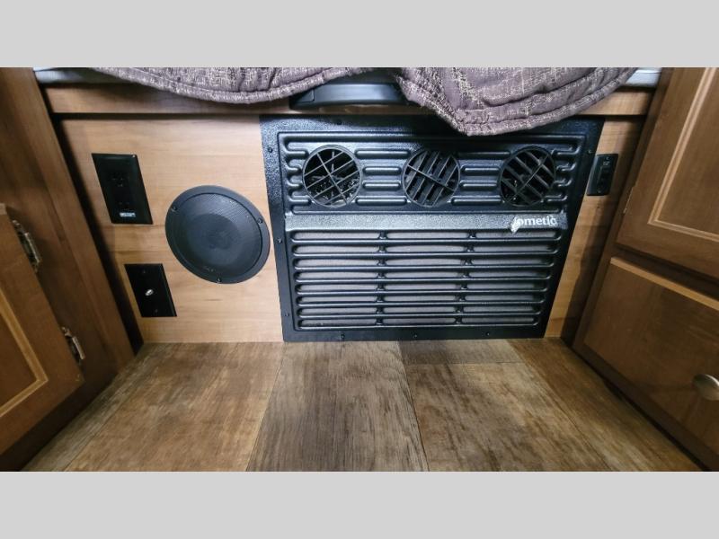 In the rear there is a 60" x 80" flip-up bed with the Cool Cat heat pump under the bed.