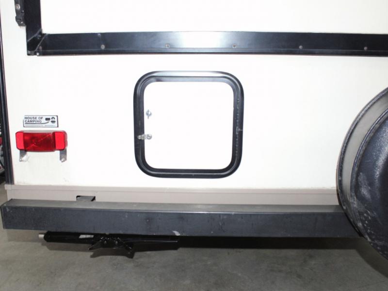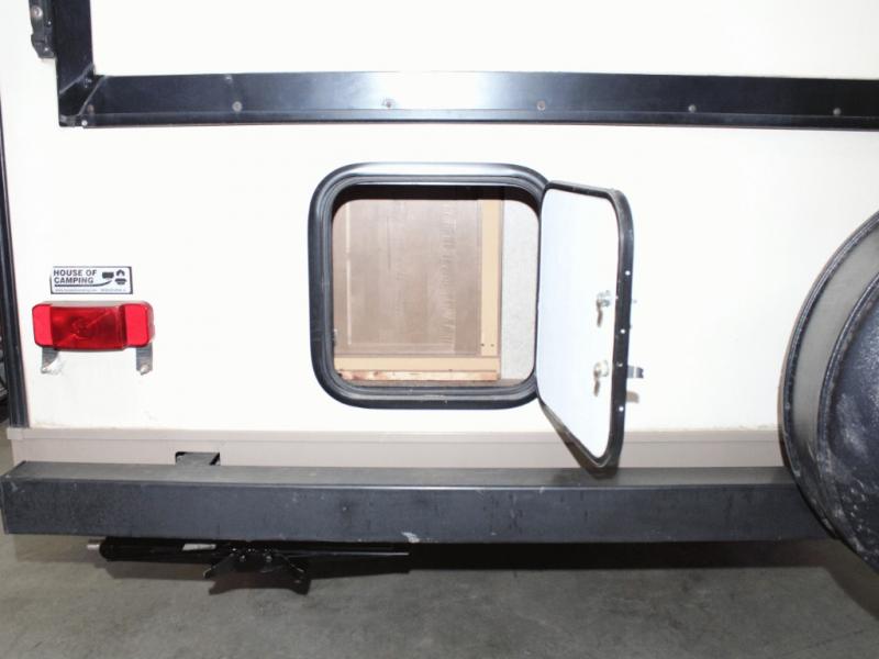 Outside, you’ll appreciate multiple storage compartments for gear and camping supplies, along with an awning that creates the perfect shaded area for relaxing outdoors. Plus, there’s even space for an optional gas grill, ideal for evenings spent cooking under the stars.