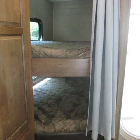 In the opposite corner you will find a set of double size bunk beds with storage.