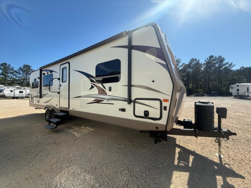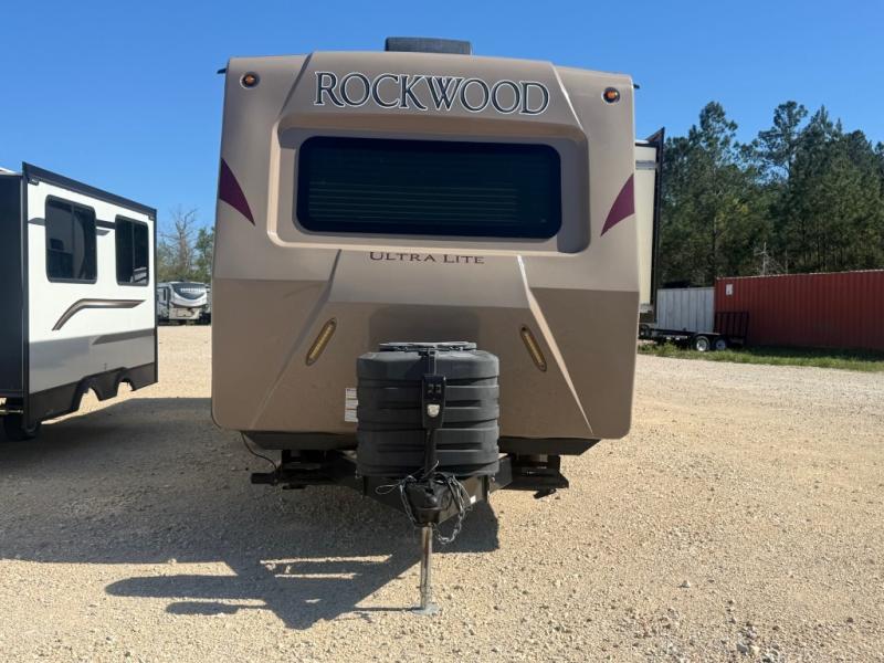 This Rockwood Ultra Lite Series travel trailer 2902WS features a rear kitchen layout, two spacious slide outs, and everything you could need to make camping fun!