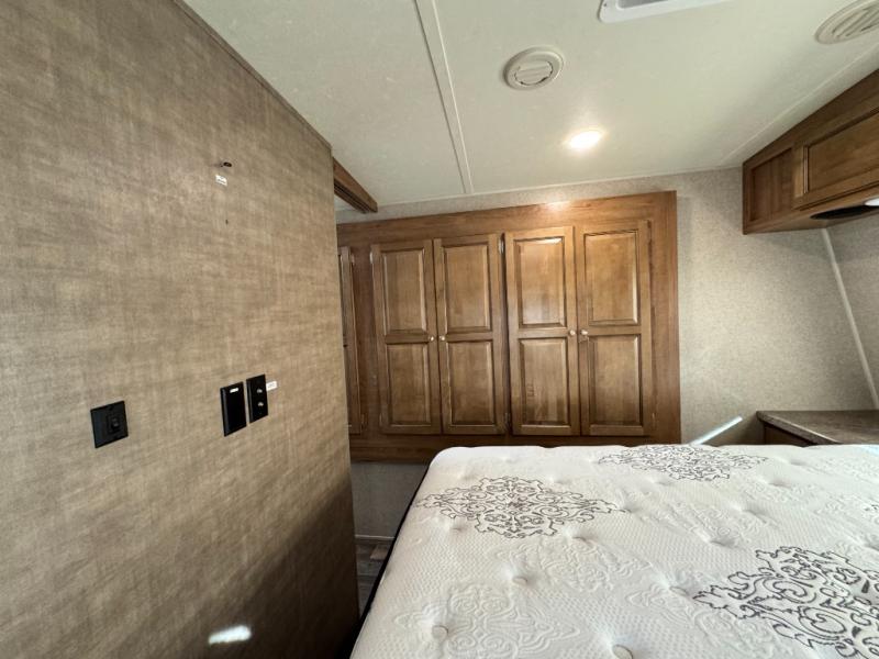 With a dry weight just over 7,000 lbs, the 2906WS can be towed by a properly equipped half-ton truck or larger SUV. When fully loaded, expect a total weight around 8,000 lbs. The trailer’s balance and aerodynamic front cap design help reduce wind resistance and improve handling on the highway.