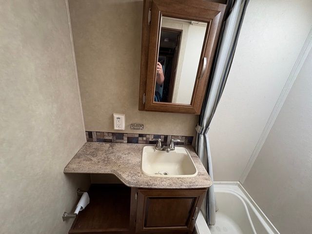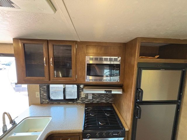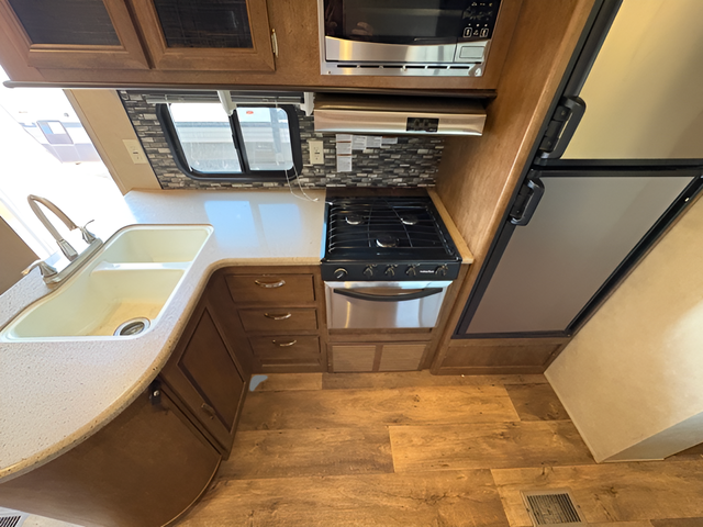 Outside you can enjoy the exterior kitchen. Easily fix meals or snacks for your family, while spending more time with them outdoors. It is easy to store you exterior camping gear inside the pass-through storage area, and more!
