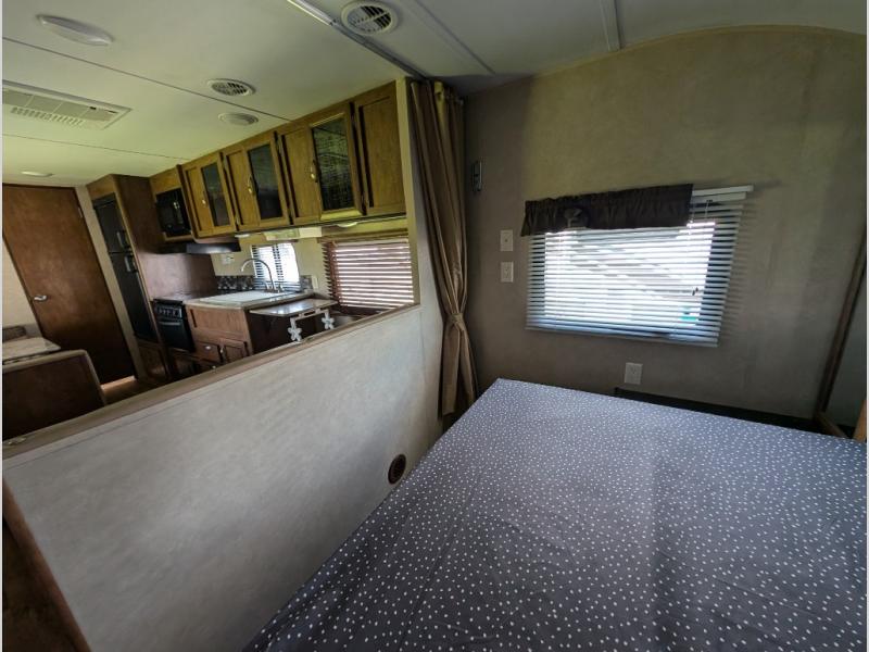 There are plenty of overhead cabinets throughout the travel trailer, so you can bring all of your necessary items from home, and much more.