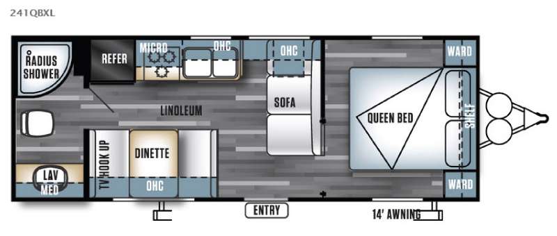 The Salem Cruise Lite 241QBXL travel trailer by Forest River offers a rear bath.