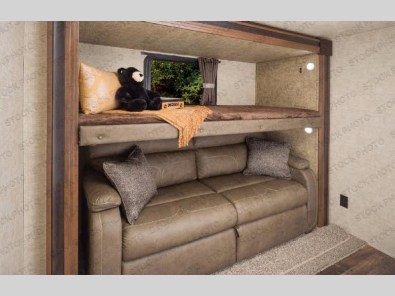 Whether you're lounging in front of the fireplace, prepping dinner in the kitchen island, or watching the kids enjoy their own bunkroom and loft retreat, this RV was made for making memories.