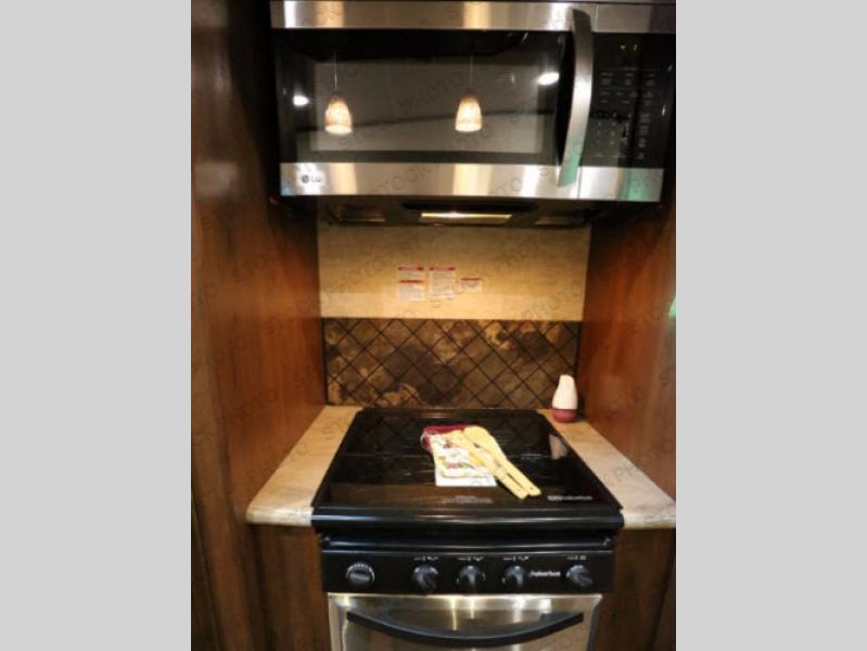 • Exterior Kitchen – Mini fridge, overhead cabinet, counter space, and bumper-mount gas grill make outdoor cooking easy and fun
