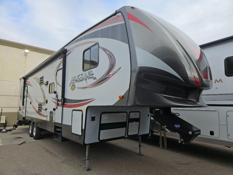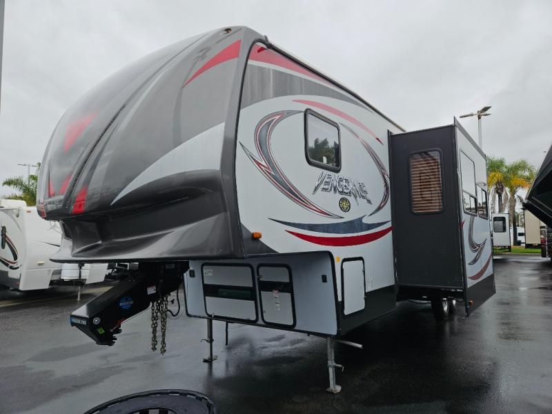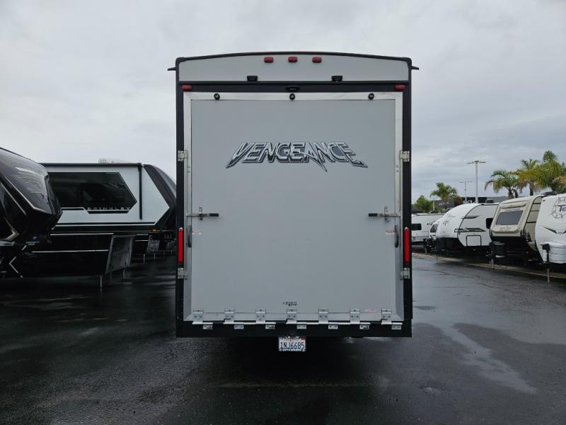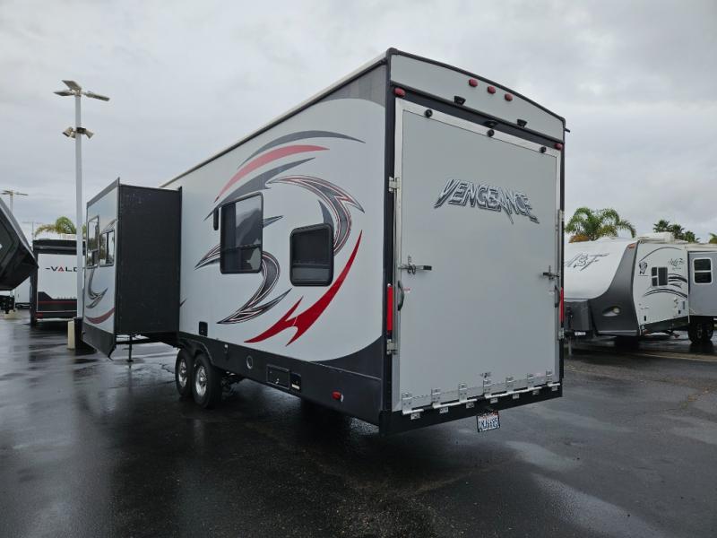 If you are looking for a toy hauler fifth wheel with plenty of space and comfort, then you have found it in the dual entry 312A laminated Vengeance by Forest River.