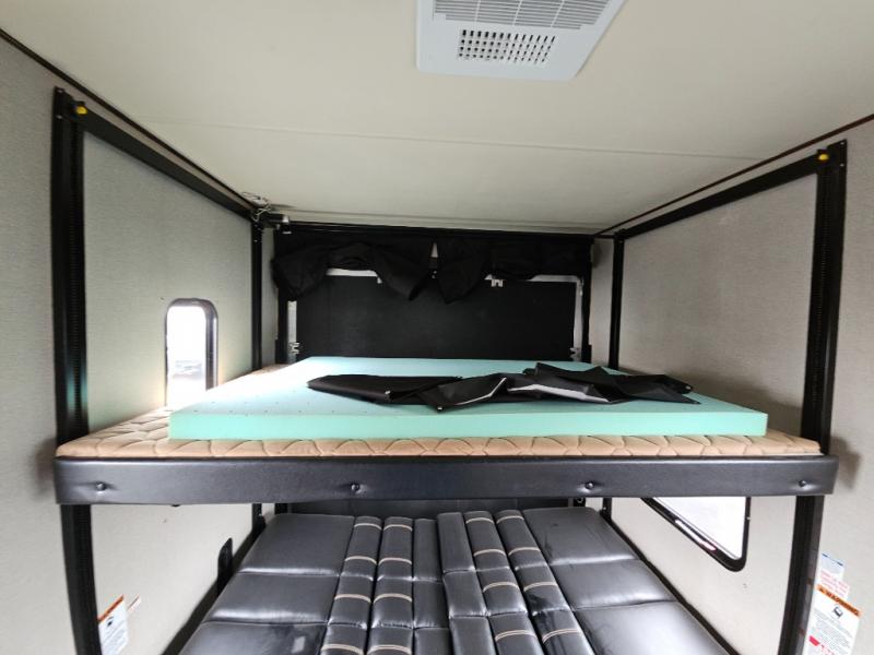 The cargo area offers dual flip-up sofas and a free standing table as well as a TV mount. There is plenty of room for easy loading and unloading of your off-road toys with the large rear ramp door.